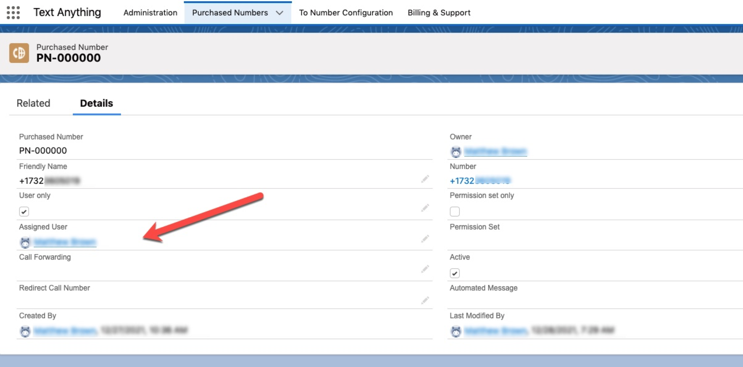 Purchased numbers can be assigned to users or groups (via custom Permission Sets). For example, a user wants a unique number to put on a business card so that any texts to that number go only to the user. This is a direct number assignment.